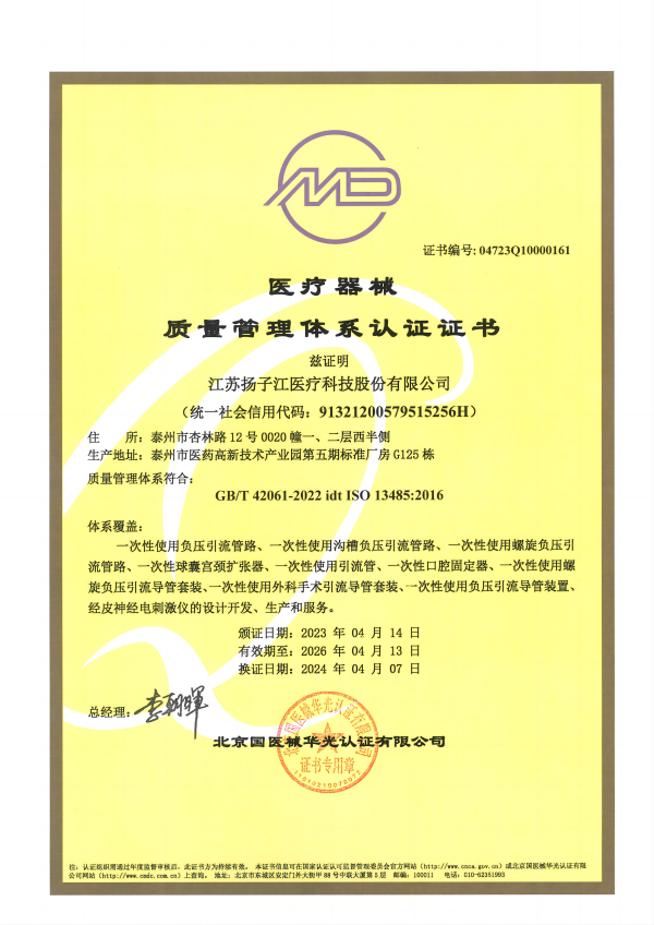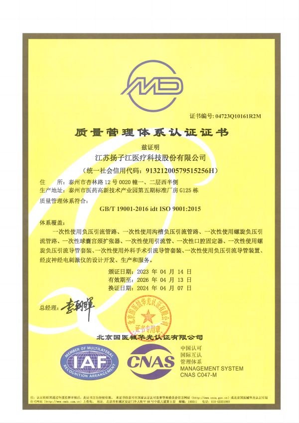 醫(yī)療器械質(zhì)量管理體系認證證書